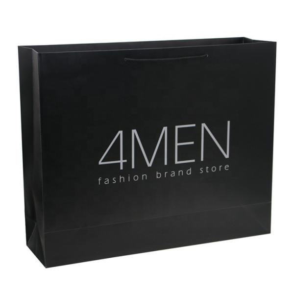 Custom Matt Lamination Luxury Black Packaging Paper Bags For Clothes Packaging Images |